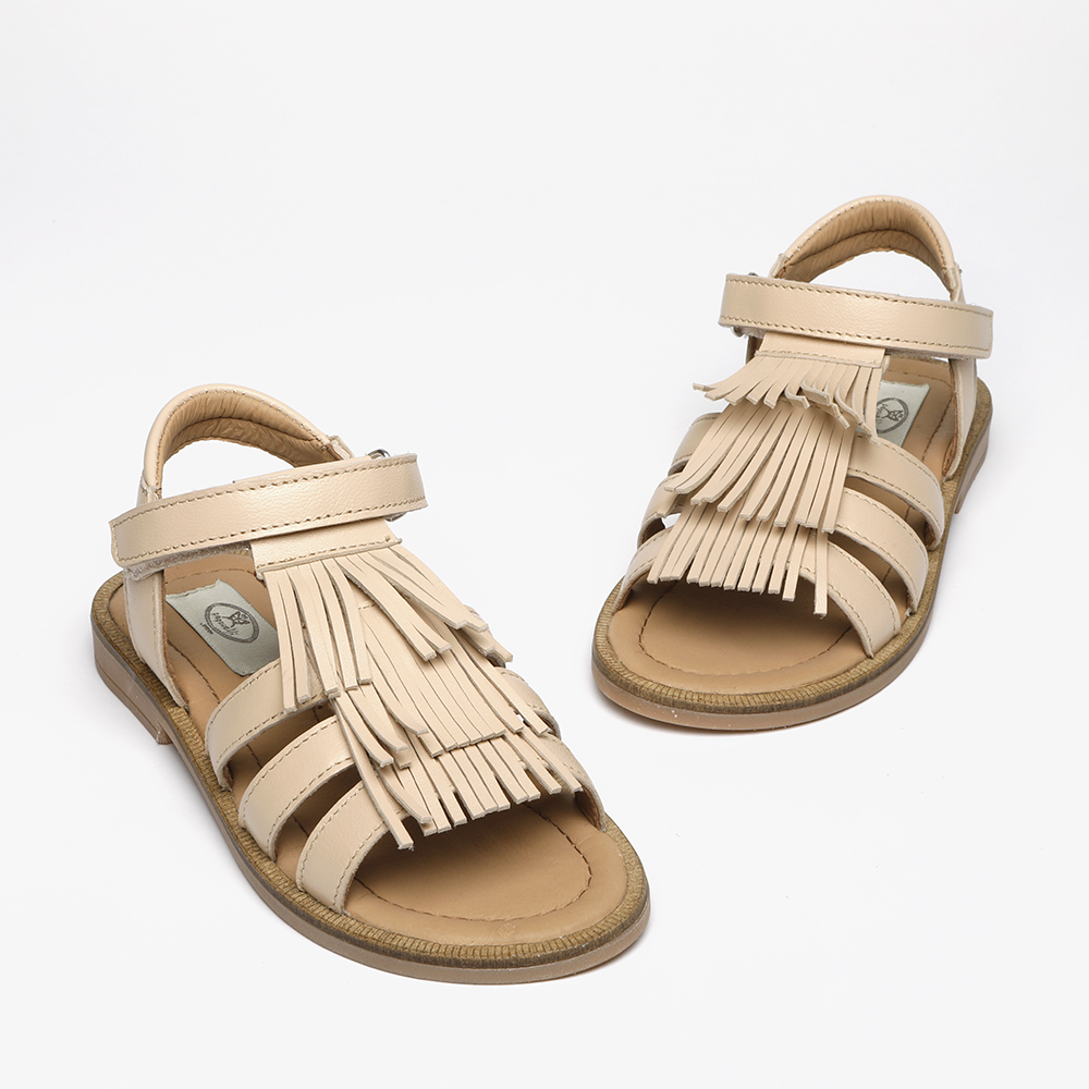 The Frannie sandal comes on a extremely soft cushiony sole, in super soft nude leather and has a discreet velcro strap, for an easy fit around the ankle.