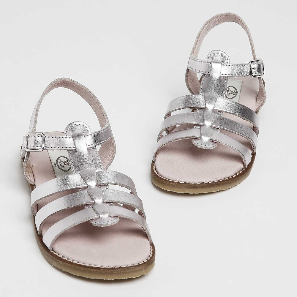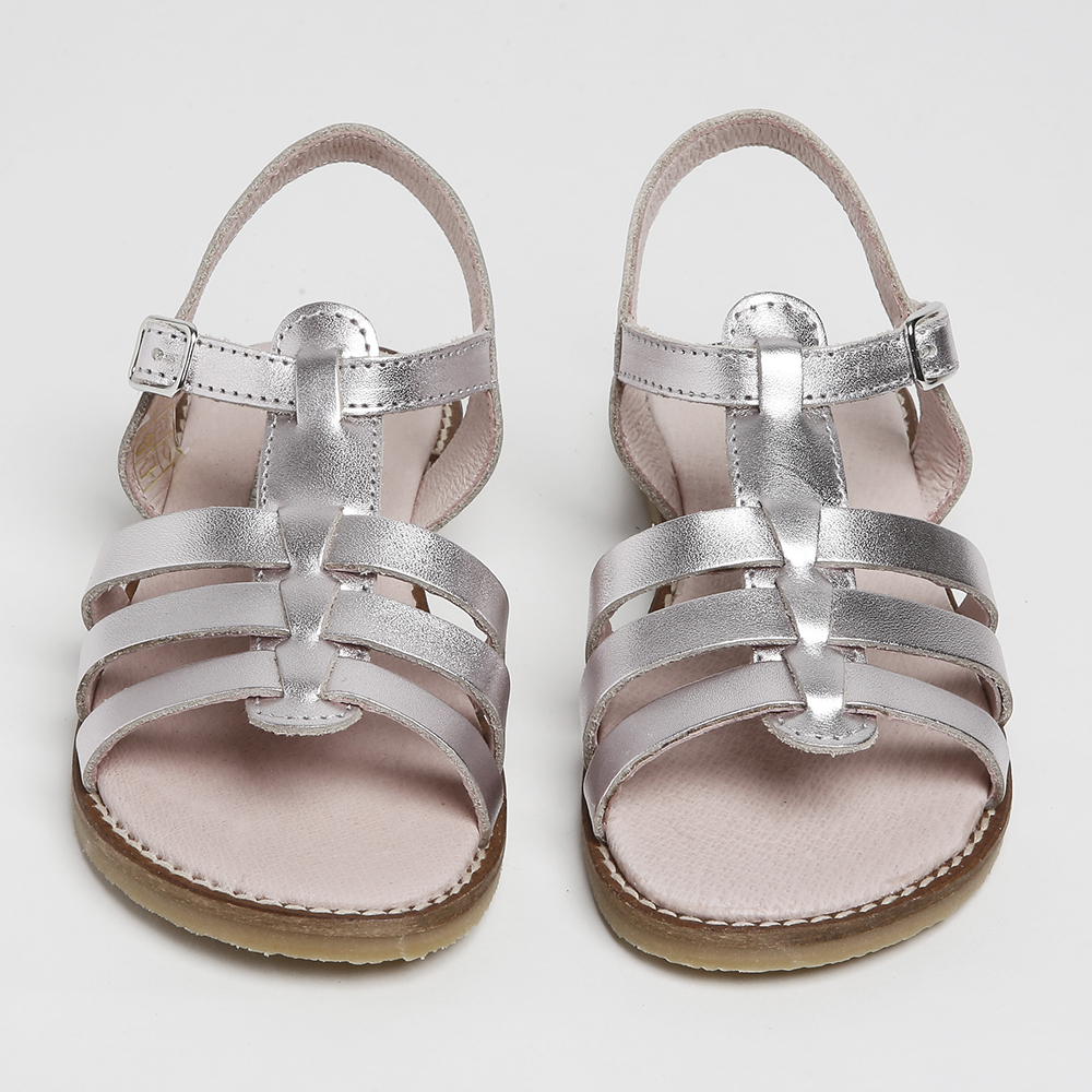 This pink metallic sandal fits well over the front foot, and is a lovely summer choice for girls. It gives support at the front of the foot and has a buckle strap around the ankle for width fitting.