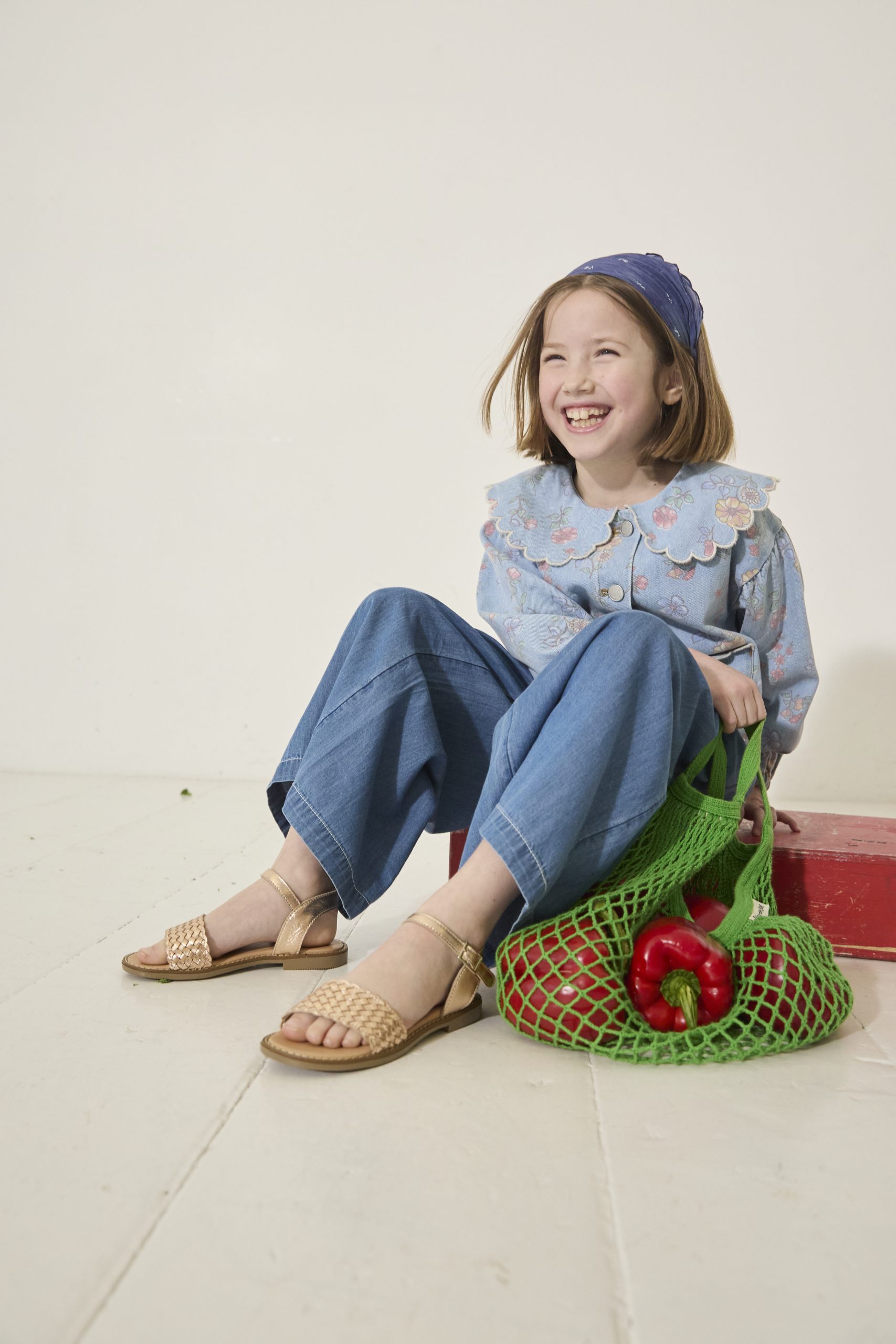 This pretty sandal in woven leather comes with a buckle ankle strap and a rubber sole. Versatile rose bronze metallic or white leather will work with absolutely everything in summer.