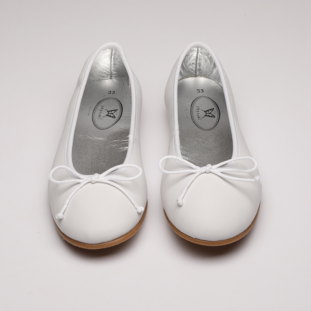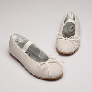 The Zinnia Ballerina with it’s perfect bow on top of foot is as easy as it is pretty. Sizes 28-32 have an elasticated band over the foot to make them hold on the foot, sizes 33-40 do not.